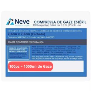 Gaze Estéril 13 Fios 7,5cm x 7,5cm 100 Pacotes (1000un) Neve