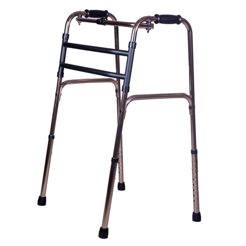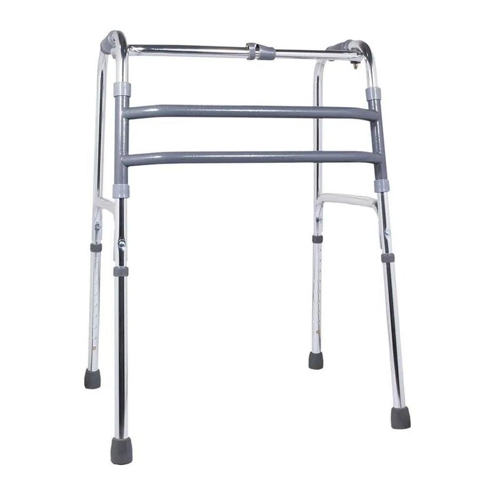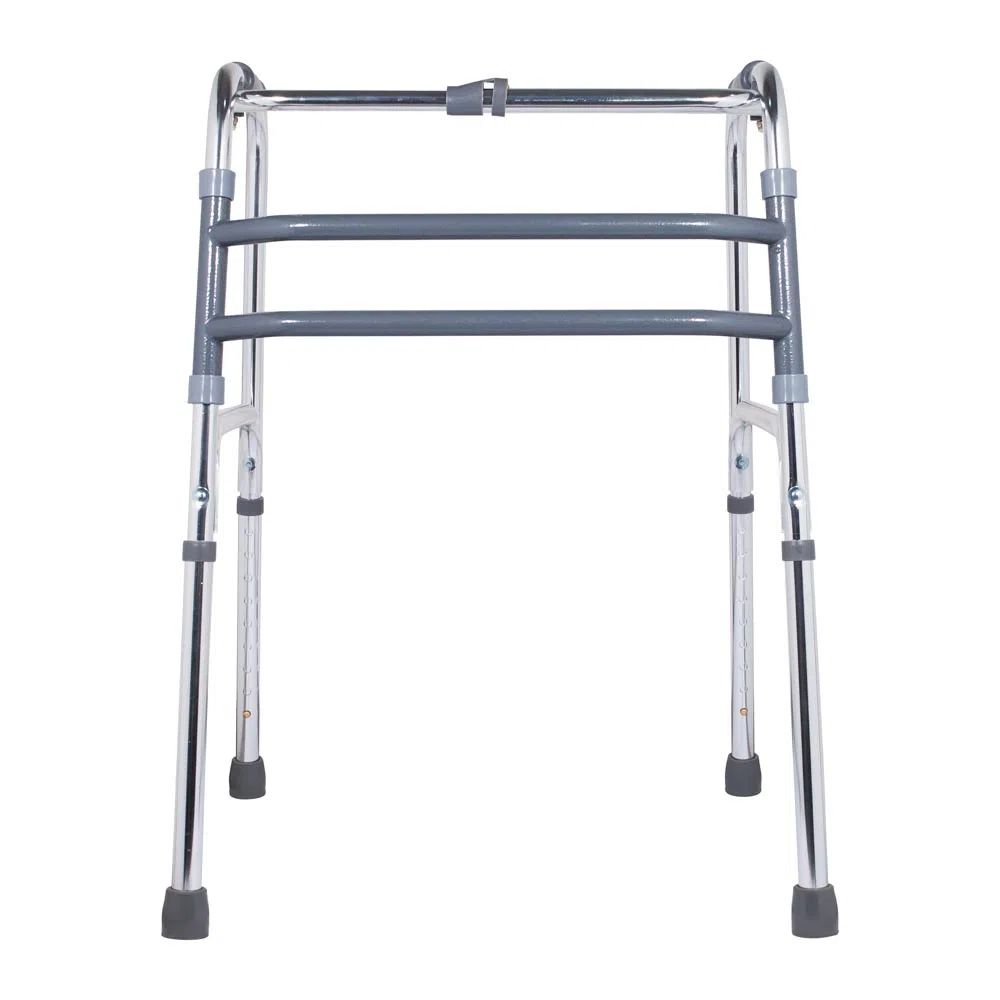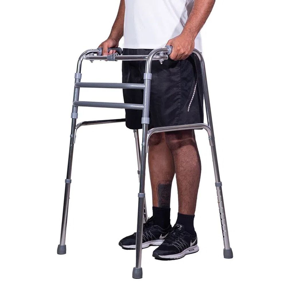 - Posicione o andador: Coloque o andador à sua frente, mantendo-o próximo ao corpo e certificando-se de que as quatro pontas estejam em contato com o chão.