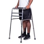 - Caminhe em direção ao andador: Dê um passo em direção ao andador, mantendo o peso do corpo sobre as pernas e utilizando os braços para apoio e equilíbrio. Repita o processo para continuar caminhando.