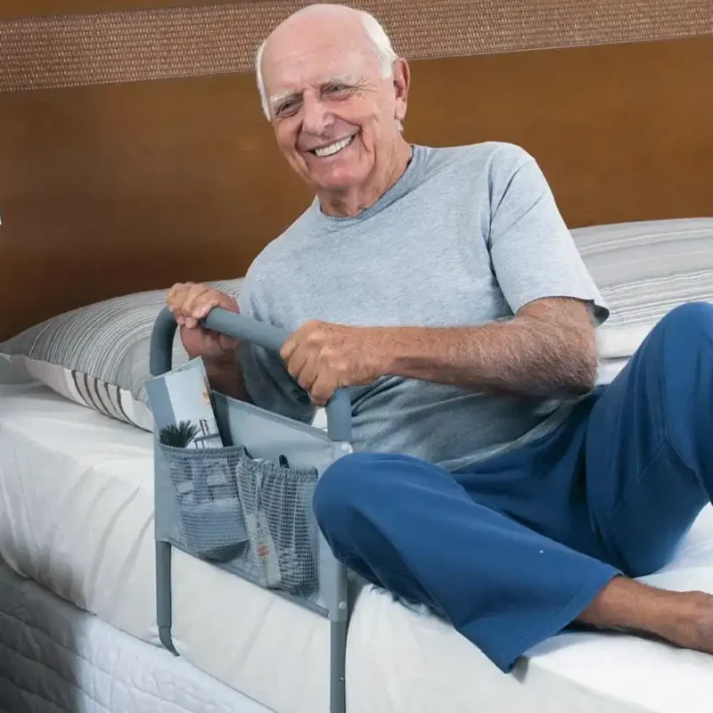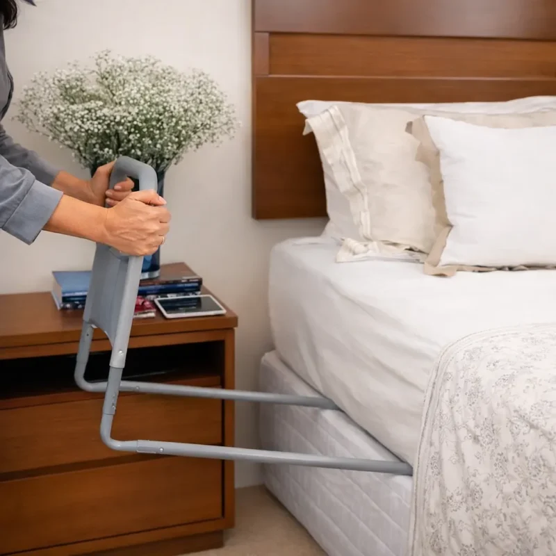 - Apoie-se no apoio de cama stand up para levantar-se.