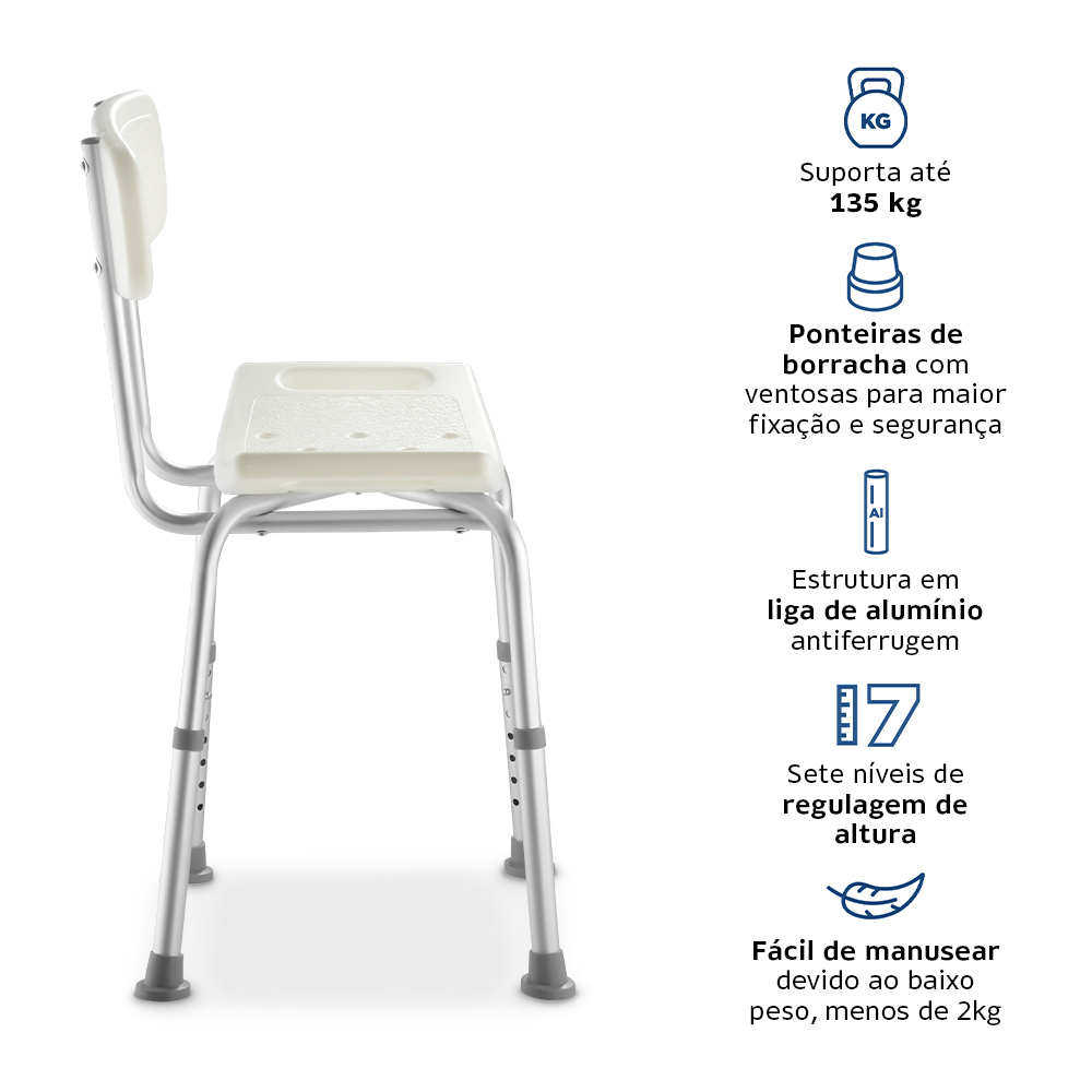 Banco para Banho com Encosto e Antiderrapante – Hidrolight