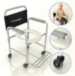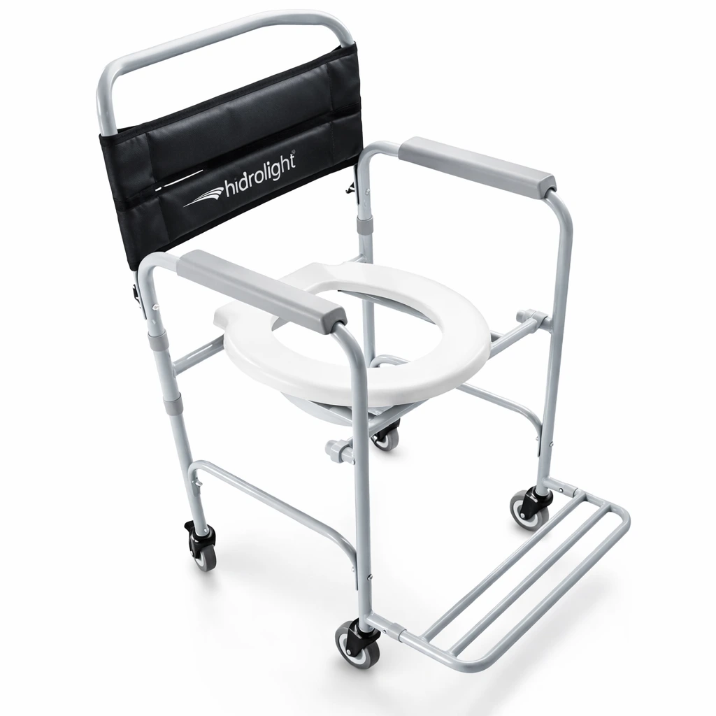 - Rodízios que permitem deslocamento suave, com travas traseiras para segurança total durante o banho.