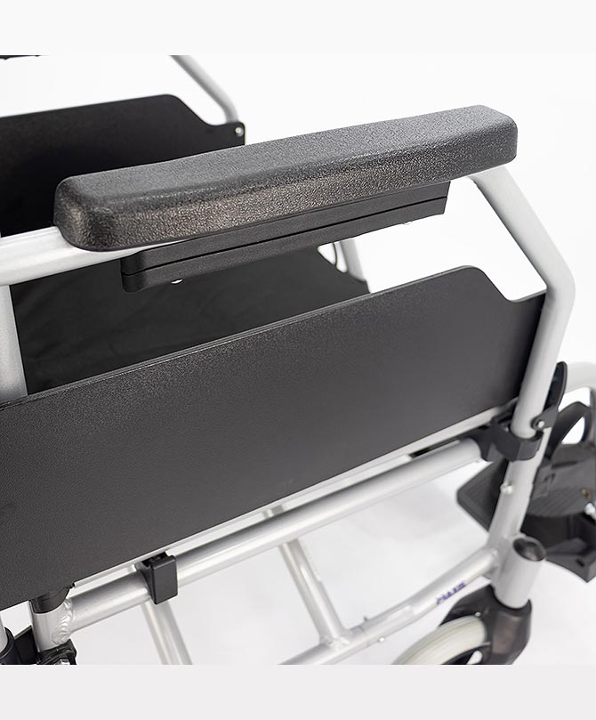 | Apoios para os pés | Articulados, rebatíveis, removíveis, com ajuste de altura |