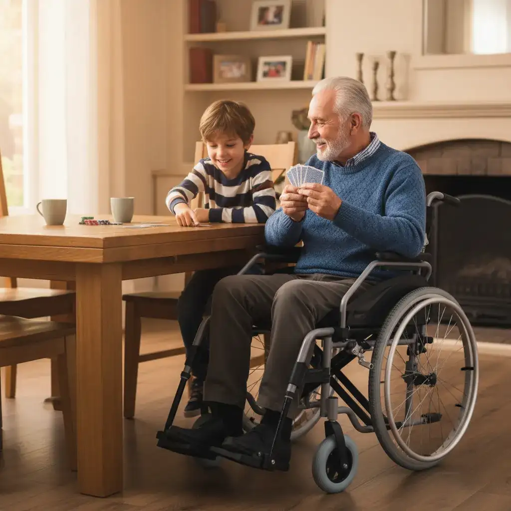 R: Ele facilita transferências laterais (cama, carro) e permite aproximar-se de mesas e superfícies.
