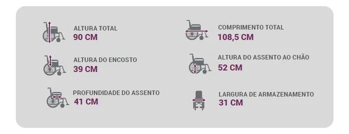 | Larguras do Assento | 40 cm, 44 cm, 46 cm, 48 cm |