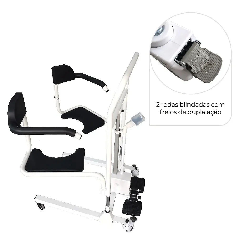 2. Versatilidade 3 em 1: funciona como cadeira de transferência, higiênica e de transporte interno.