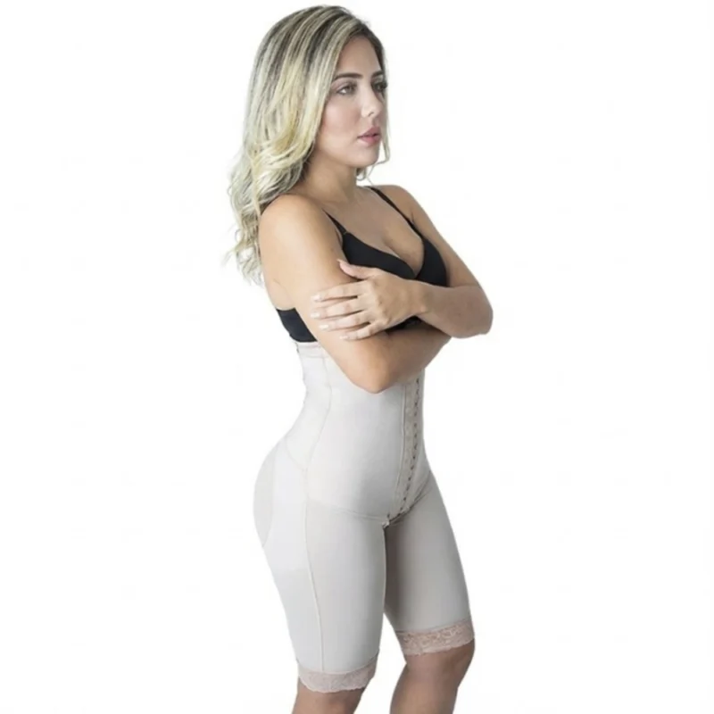 R: Ela oferece suporte e compressão pós-cirúrgica, reduzindo inchaço e modelando o corpo.