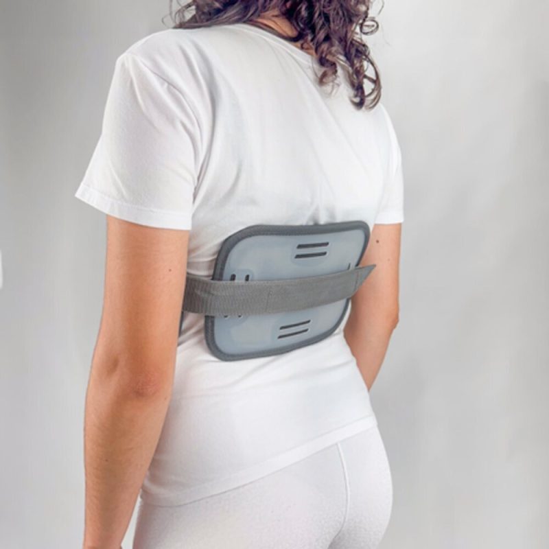 1. Posicione o colete ao redor da região toracolombar e ajuste as colunas verticais conforme sua altura.
