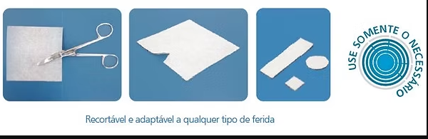 - Recortável e adaptável: ideal para feridas de diferentes formatos e profundidades