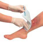 - Limpe a ferida com solução salina estéril e seque as bordas