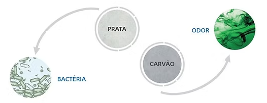 | Ação antimicrobiana | Sim, devido à prata impregnada |