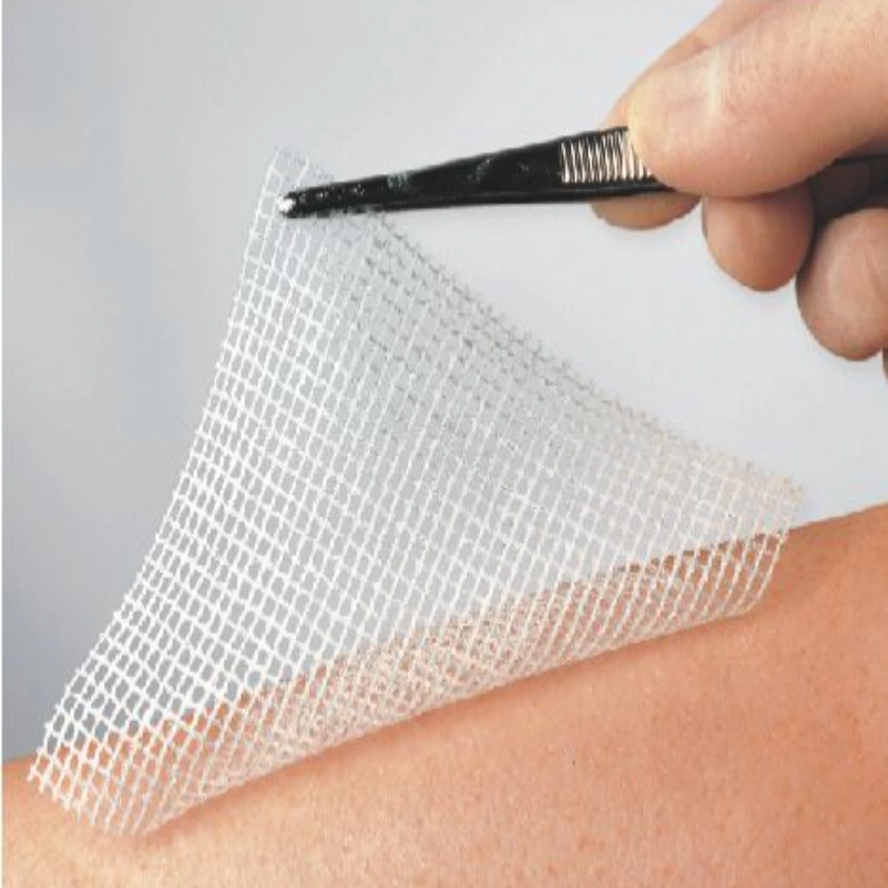 - Ferida Limpa e Saudável: A malha aberta permite a drenagem do exsudato e a troca gasosa.
