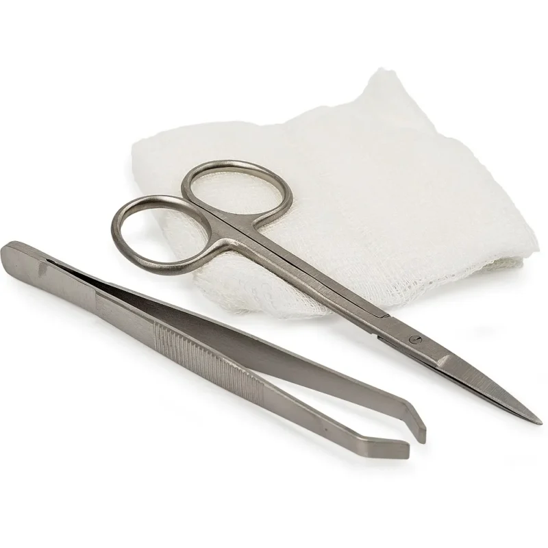 R: Sim, inclui pinça, tesoura e 5 gazes – kit completo.