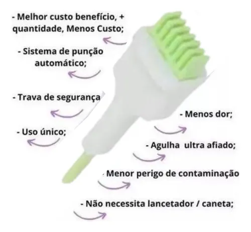 - Praticidade total: dispensa caneta lancetadora, basta um clique