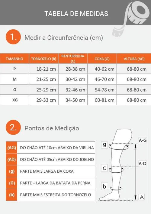 - Meça tornozelo e panturrilha: Use fita métrica para as medidas (em cm).