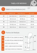 | PP | Tornozelo: 16,5-20,5cm, Panturrilha: 26,5-37cm, Calçado: 34-36 |