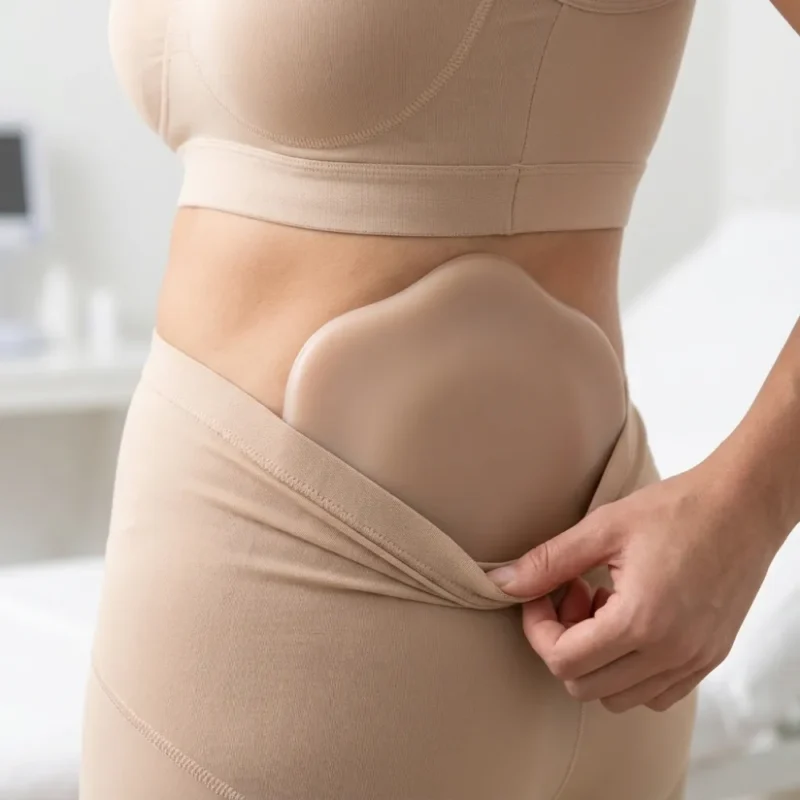 3. Vista o modelador ou cinta pós-cirúrgica por cima da placa para fixá-la.