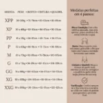 Tamanho PP 41–51kg • Busto 84–87cm • Cintura 68–71cm • Quadril 94–97cm