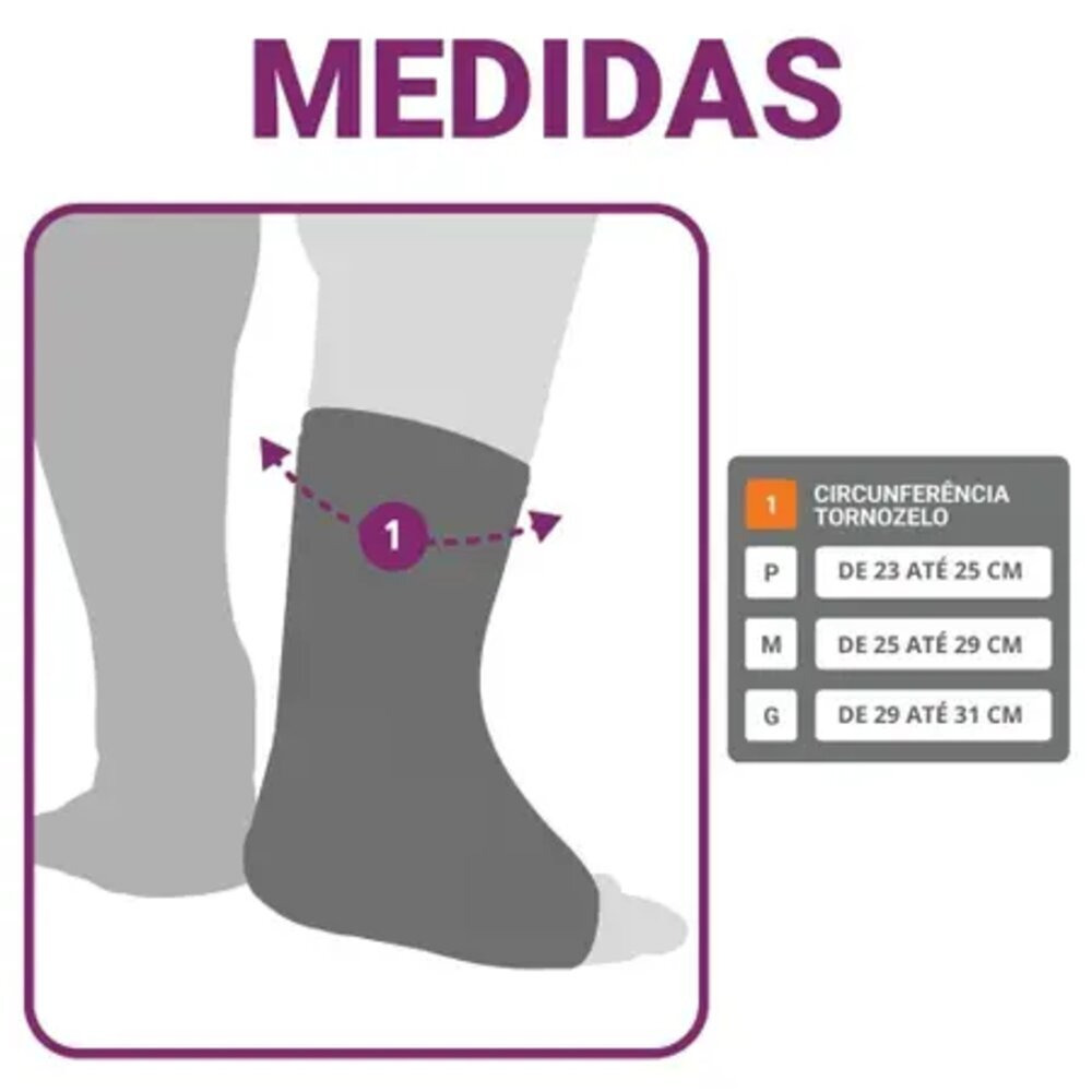 - Conta com silicone de proteção que massageia a região dos maléolos, melhorando o conforto e a recuperação.